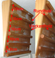 Höhe der Oberkante deiner Türzarge zur Decke. 2. Notiere dir alle Maße auf einen Zettel und fertige dir eine kleine Skizze dazu an. ![]() 3. Siehe in der Höhe ca. 2cm ab, nun hast Du bereits das Maß von deinem Hangelbrett. Wähle beim Kauf eine mehrfach verleimte Tischlerplatte mit einer Stärke von mindes- tens 1cm stärke! 4. Nun bestimme die Längen deiner Leisten in dem du von der gemessenen Brettbreite 2cm abziehst. Du solltest dich für zwei verschiedene Leisten entscheiden, einmal Rundholz mit einem Durchmesser von 4cm und Vierkantholz mit 2,5cmx2,5cm. 5. Anzahl der Leisten bestimmen, dabei sollte ein Abstand von Leiste zu Leiste von mindestens 10cm eingehalten werden! Die Menge der Leisten sollte in beidseitigen Wechsel (Rund, Eckig, Rund usw.) errechnet werden. ![]() 6. Nun fehlen dir noch die Schrauben für die Leisten man rechnet mit einer Holzschraube alle 10cm (lieber eine mehr als zu wenig) jeweils eine 3-4cm am Anfang und Ende der Leiste. 7. Die Befestigung des Boards an der Wand ist abhängig vom Mauerwerk bei normalen Mauerwerk reichen vier Schrauben (z.B. Schrauben 8x80) mit Plastikdübeln (SX 12) aus. (www.heimwerker.de) 8. Nun solltest du dir überlegen ob du das Board wie im Bild mit einer leichten schrägen versehen möchtest um einen höheren Trainingsreiz erzielen zu können. Wen ja wähle nicht mehr als höchstens 65°. Die Keile dazu musst du dir selber ausrechnen und zu- schneiden. |