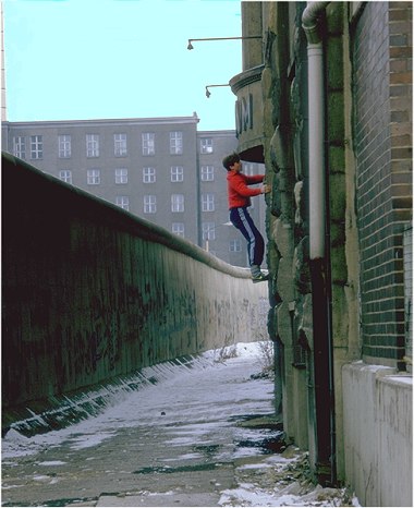 Berlin 1983 Kreuzberg, klettern nahe der Mauer