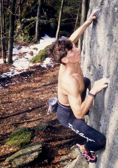Maximilianswand, Jörn Hube solo in Gratwanderung 7